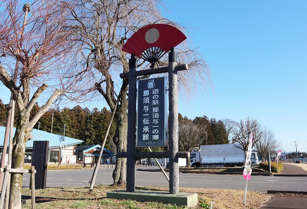 その扇の的とは、道の駅の入口に立つ大きな看板。