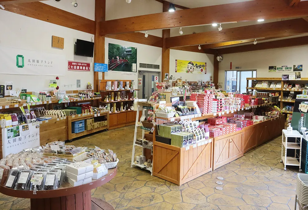 大田原市の地酒やとうがらし商品などの観光物産品から、与一くんグッズなども販売中。