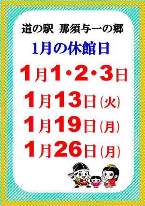 ■道の駅那須与一の郷より休館日のお知らせ